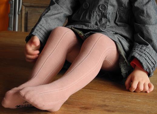 Collant en coton Oeko Tex à mailles ajourées de couleur Rose poudrée