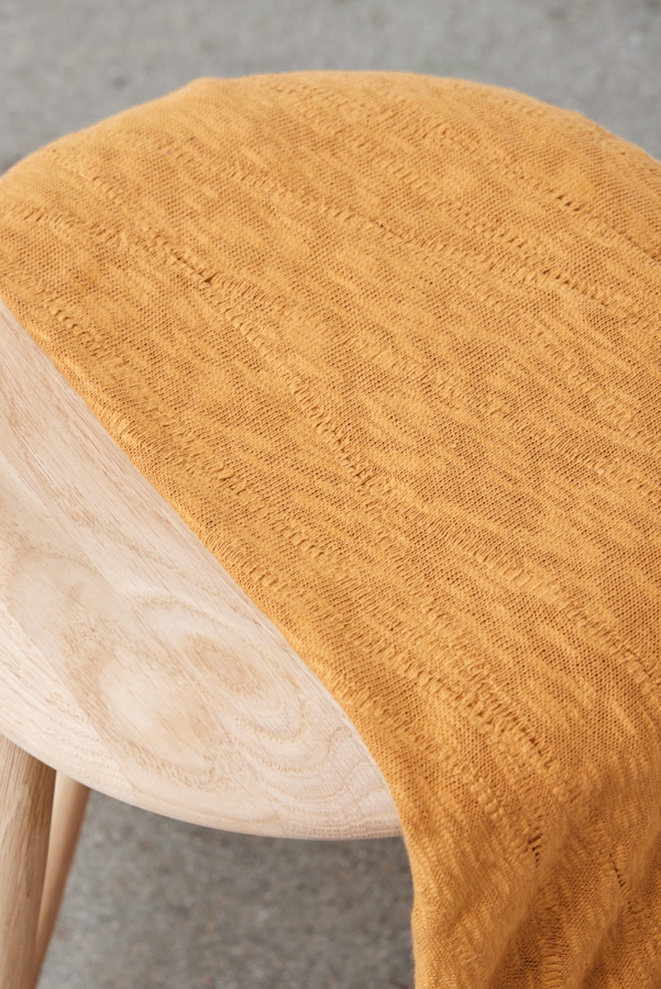 Haut à manches 3/4 de couleur Jaune ocré. Ce haut est en tricotage Jacquard.