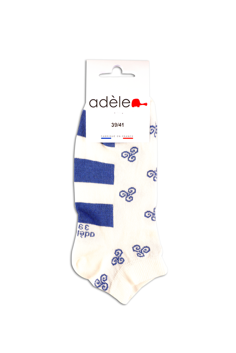 Socquettes bretonnes en coton biologique blanc avec des Triskell Bleu océan